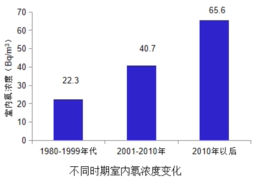 根据1998年以来公开发表的文献报道获得了31个省(自治区、直辖市)64个城市的室内浓度样本量加权均值为48.9 Bg/m3(n=9587),范围为2-877.5 Bq/m3。较不同时期室内氡浓度数据调查分析,表明我国室内氢浓度呈现持续增长的趋势,