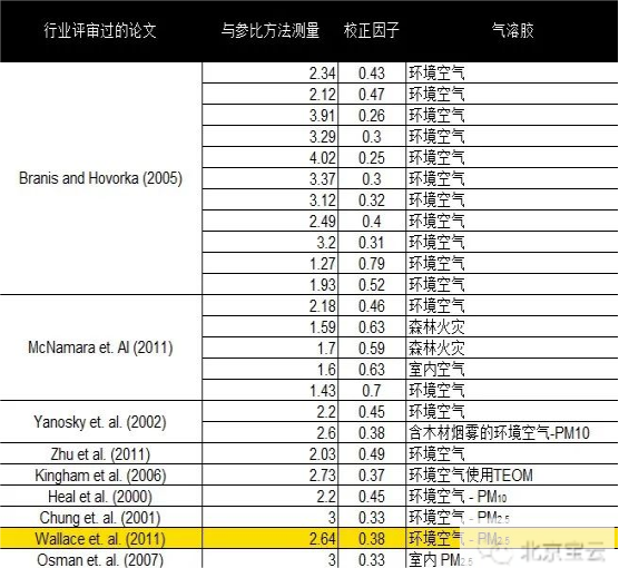 其他研究也独立提出一些DustTrak(I/II/DRX)在各类情况下的校正因子,众所周知DustTrak会高估环境气溶胶的浓度。下表总结了一些来自不同人员提供的校正因子。